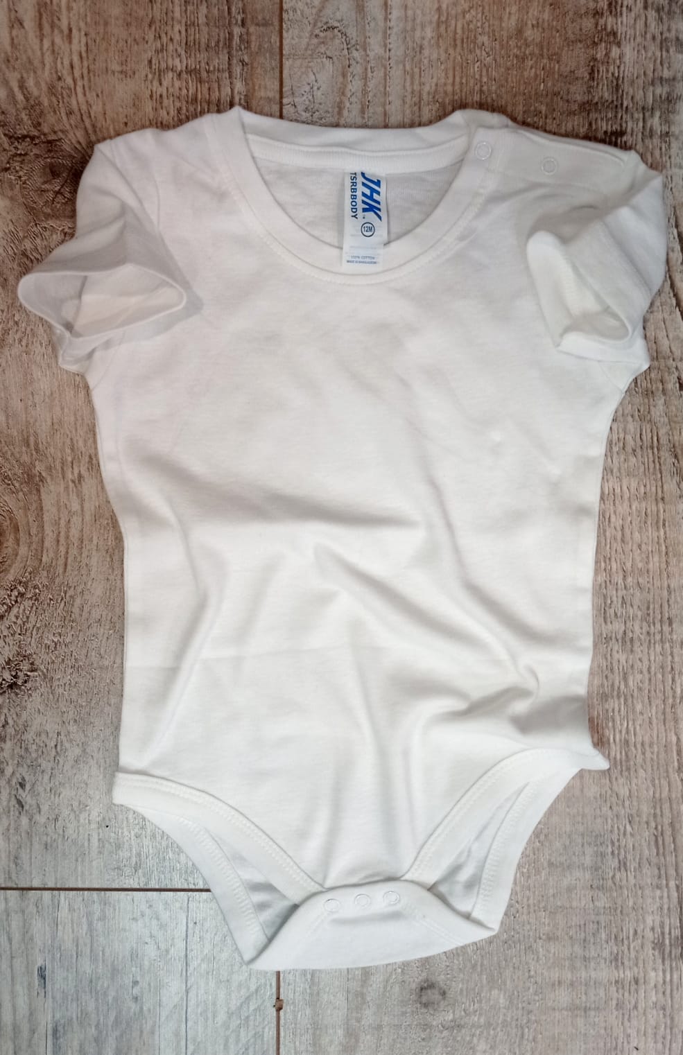 Delikatne, bawełniane, bezpieczne dla dziecka body z krótkim rękawem . Z boku przy szyi zatrzask dla łatwiejszego zakładania.