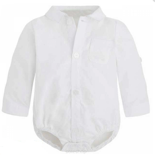 Koszula chłopięca bawełniana biała, długi rękaw , kieszonka na boku. W kroku zapinana na zatrzaski.