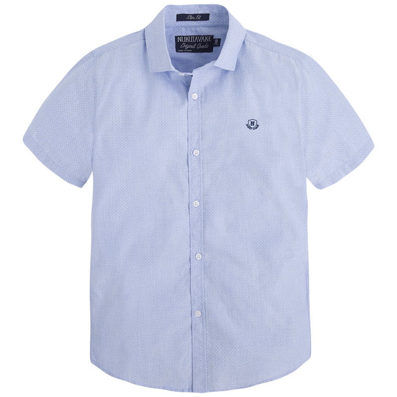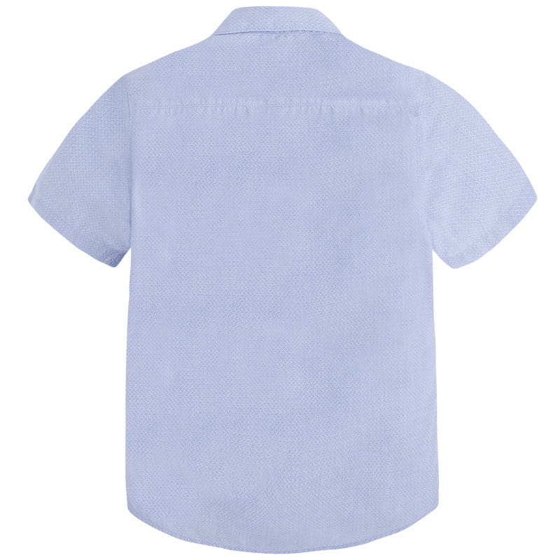 Jasnoniebieska koszulka elegancka dla chłopca MAYORAL 6124 z krótkim rękawem. Wysokiej jakości bawełna użyta do uszycia tej koszuli chłopięcej i staranne wykonanie sprawi, że dziecko będzie wyglądało bardzo elegancko.