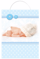 Piękna torebka ze zdjęciem dzidziusia. Materiał torebki jest połyskujący, śliski w dotyku. torebka trwała i mocna, uchwyt w postaci sznurka. Do sznureczka dołączona jest karteczka.