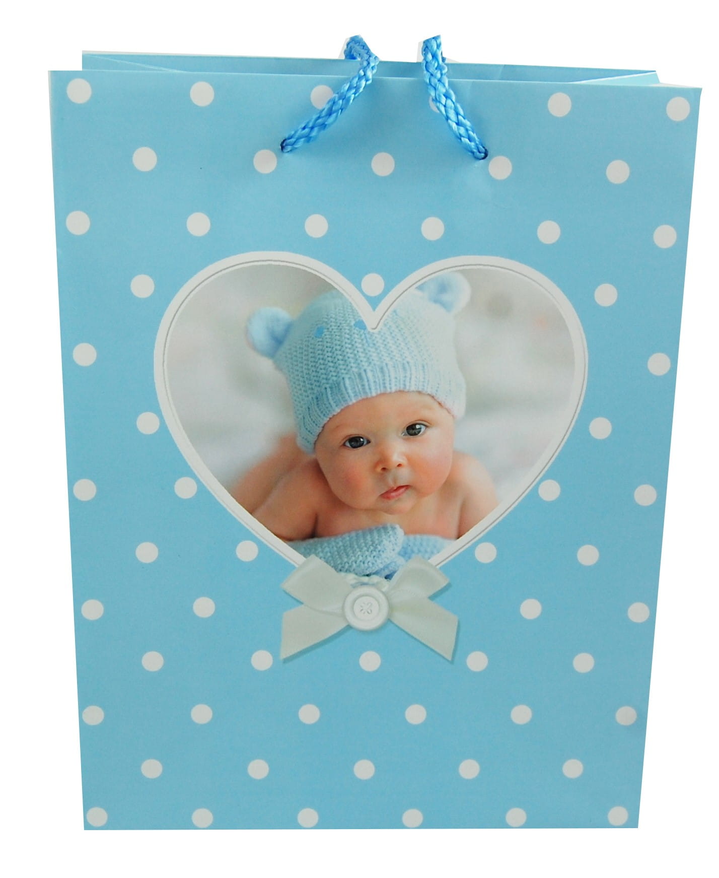 Piękna torebka ze zdjęciem dzidziusia. Materiał torebki jest połyskujący, śliski w dotyku. Torebka trwała i mocna, uchwyt w postaci sznurka. Do sznureczka dołączona jest karteczka.